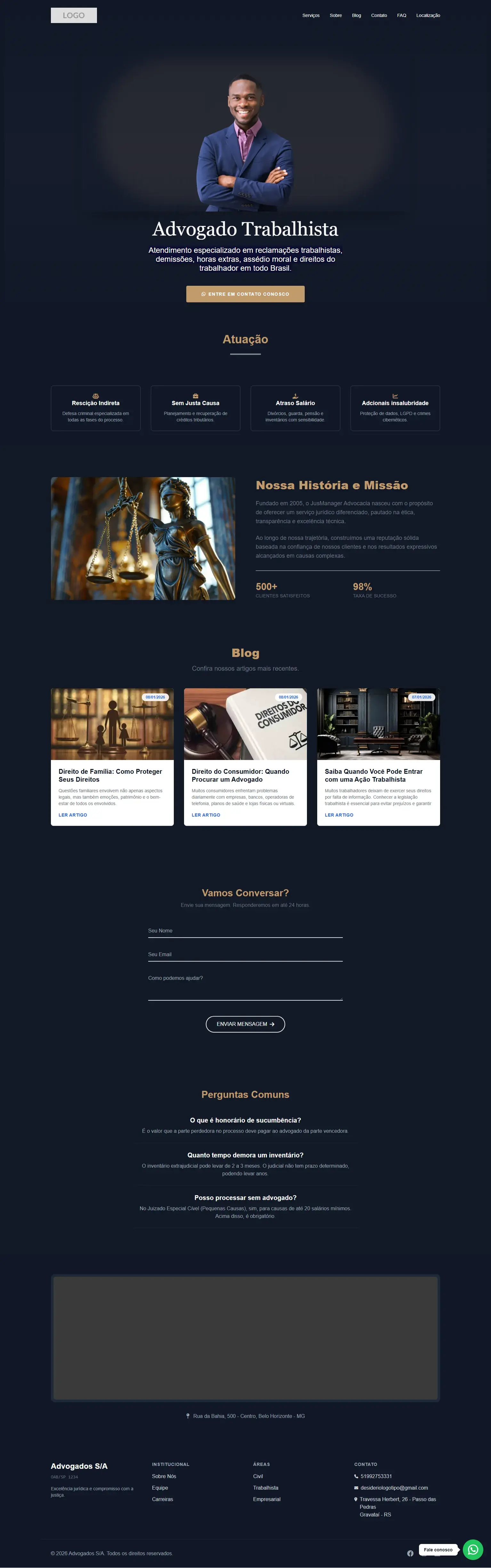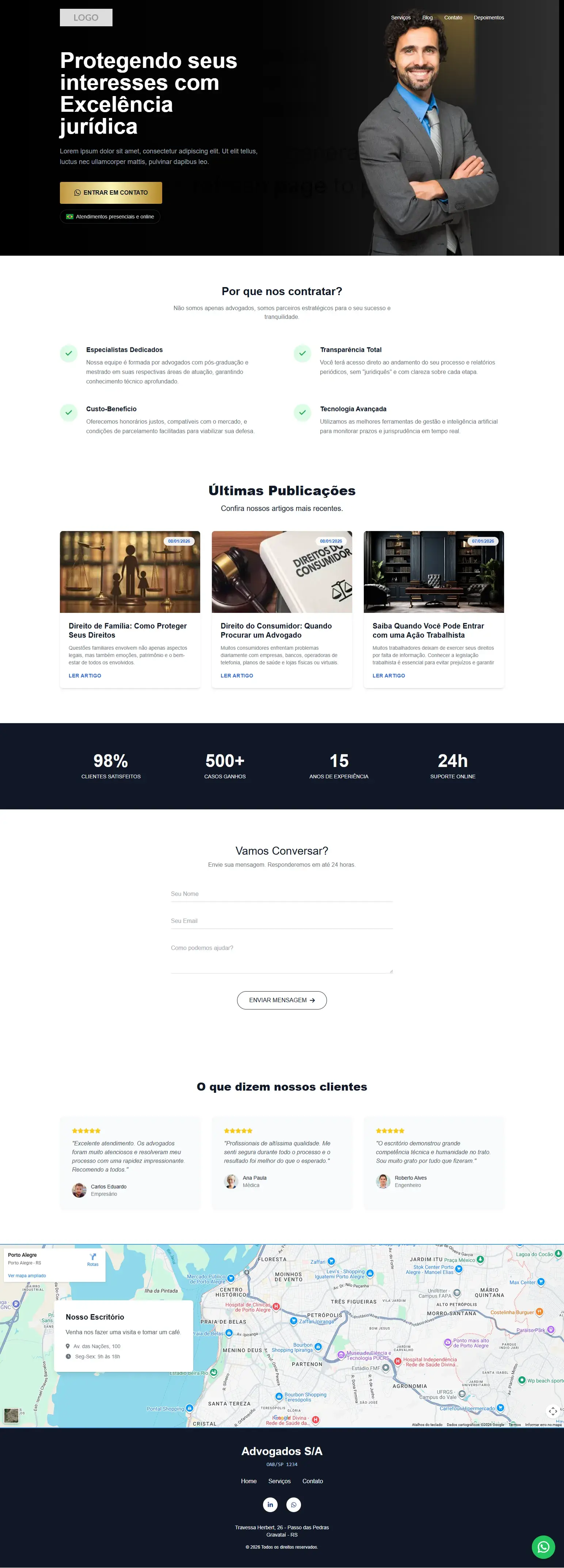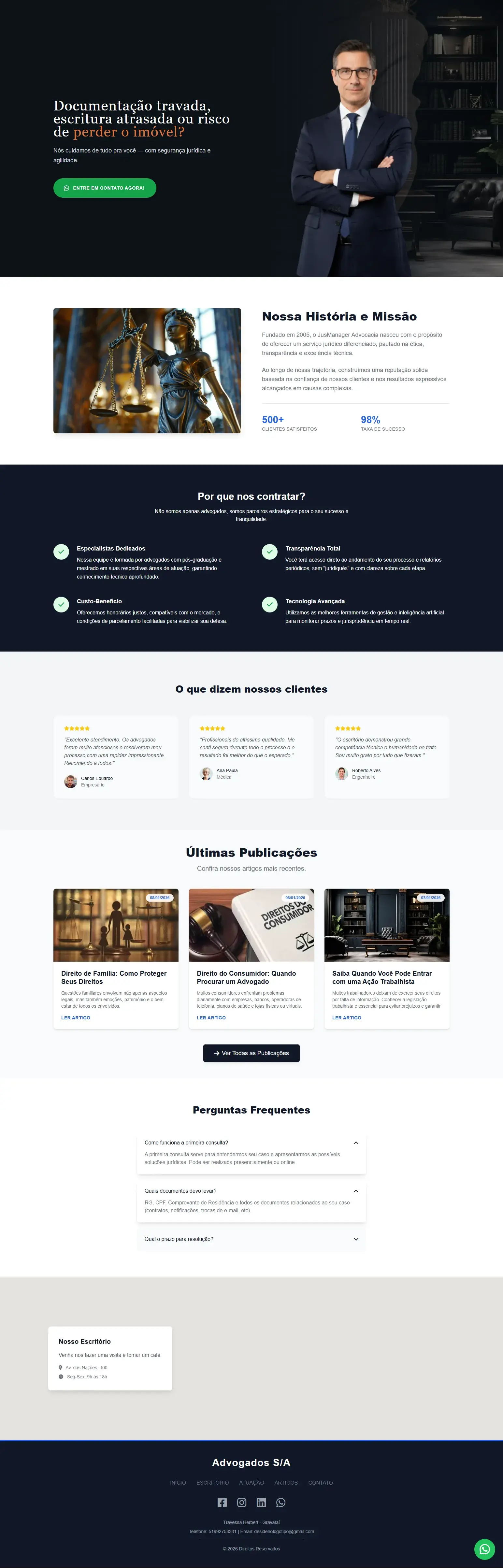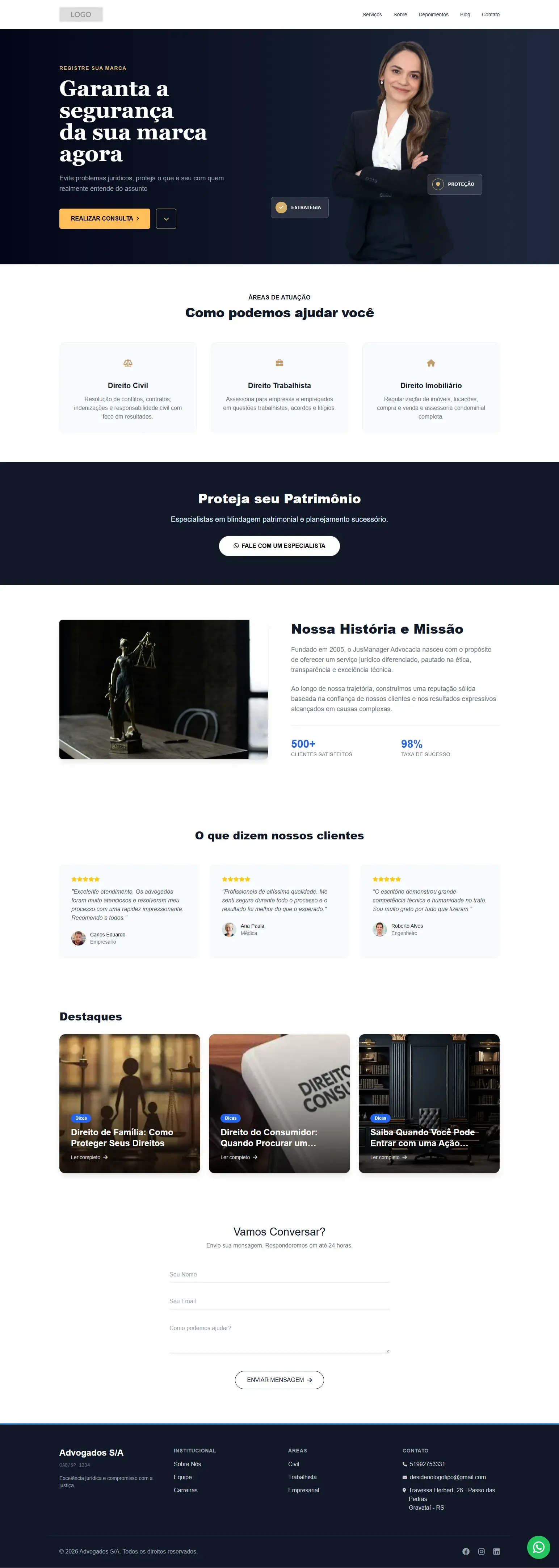 Design de alta conversão, adaptado para transmitir a autoridade que sua advocacia merece.