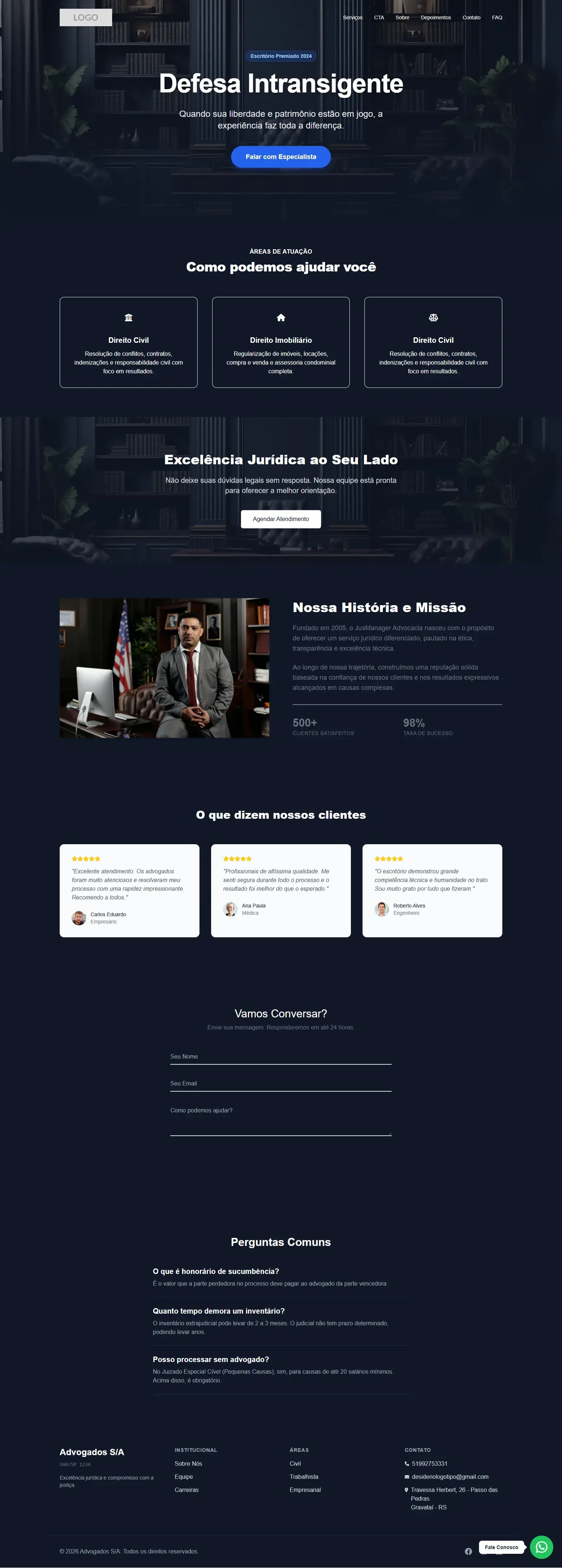 "Nunca imaginei que conseguiria criar meu próprio site. O JusBuilder é incrivelmente intuitivo e o resultado ficou profissional."